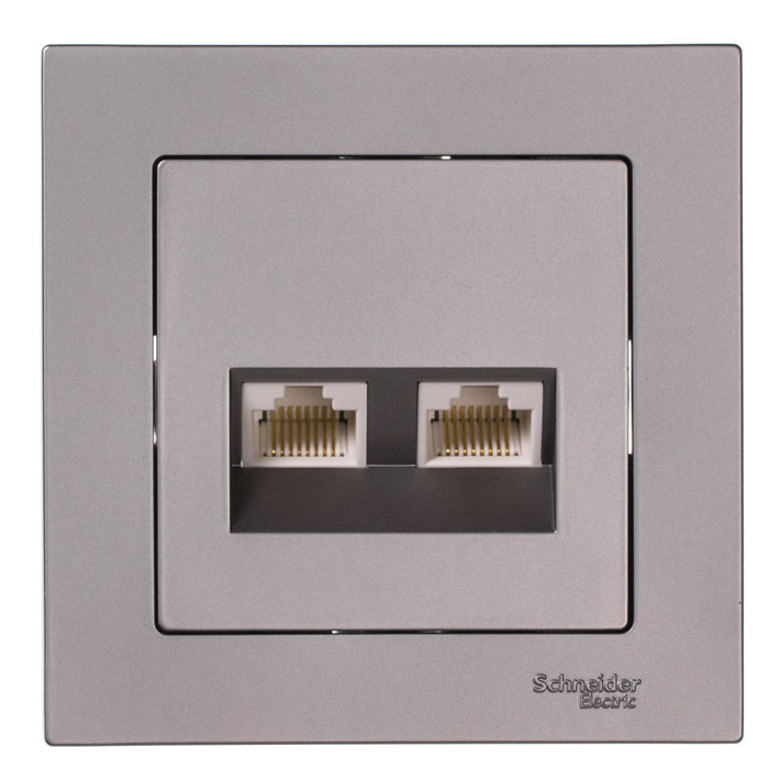 • Розетка двойная компьютерная RJ45+RJ45 кат.5E механизм Schneider Electric AtlasDesign Алюминий