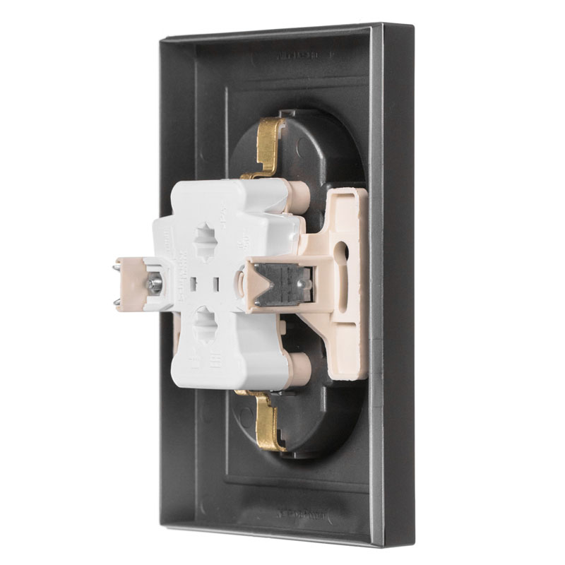 • Розетка с заземлением со шторками 16A механизм Schneider Electric AtlasDesign Карбон