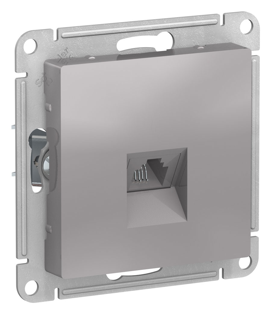 • Розетка телефонная RJ11 механизм Schneider Electric AtlasDesign Алюминий