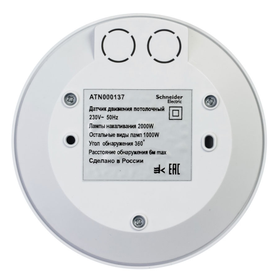 При наличии Датчик движения потолочный 2000 Вт 360° Schneider Electric AtlasDesign Белый на складе и оформлении заказа до 16:00 - доставка или самовывоз через один рабочий день.