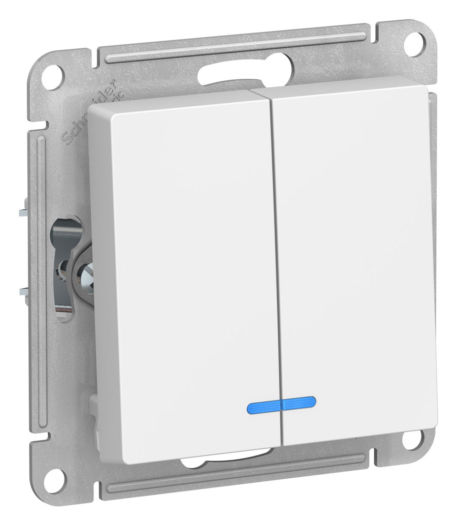 При наличии Выключатель 2-клавишный с подсветкой сх.5A 10AX механизм Schneider Electric AtlasDesign Белый на складе и оформлении заказа до 16:00 - доставка или самовывоз через один рабочий день.