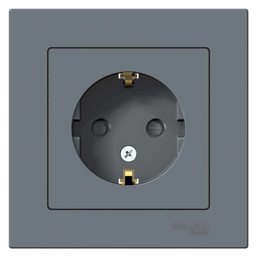 Розетка с заземлением со шторками 16A в сборе Schneider Electric AtlasDesign Грифель ATN000744