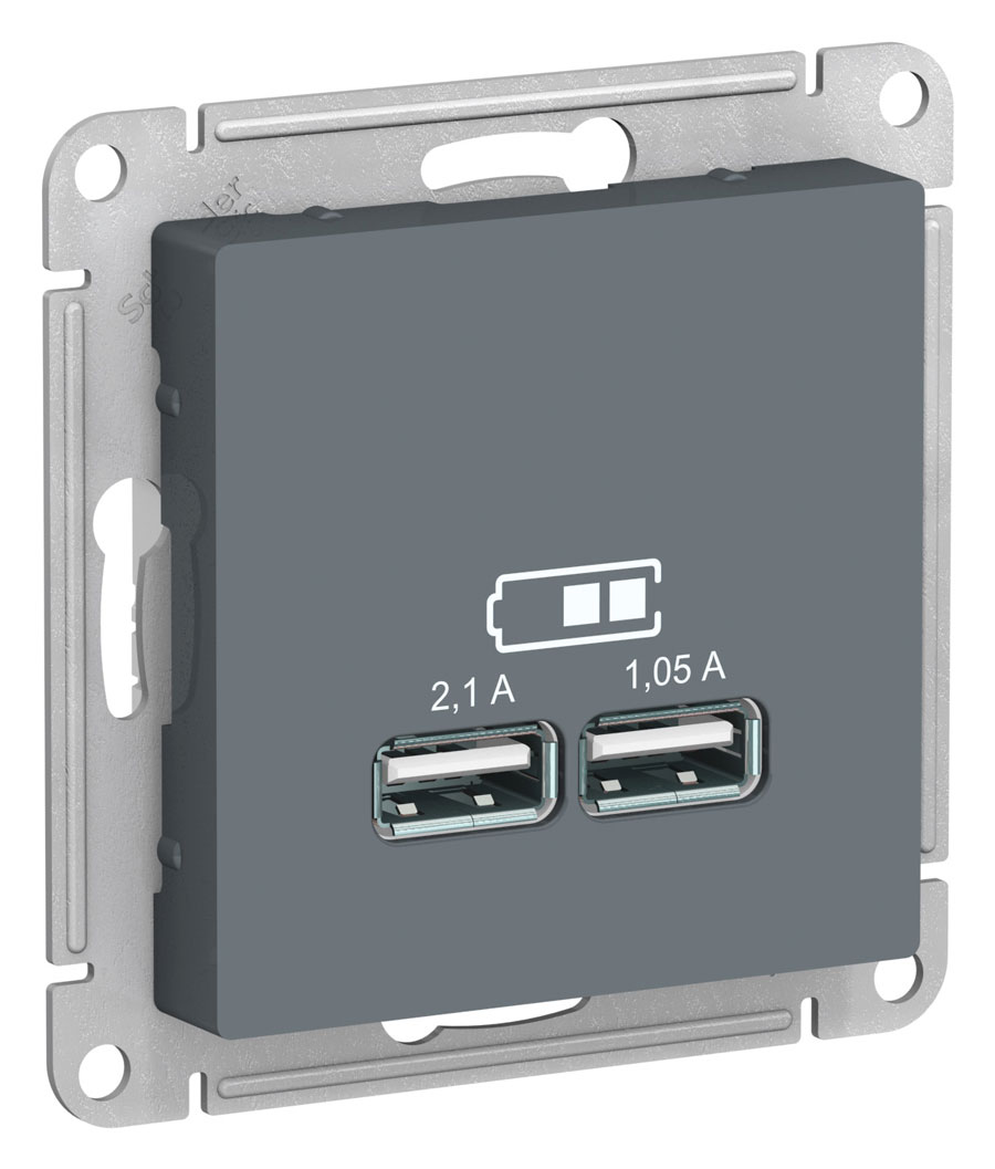 • Розетка USB 5В 1 порт x 2,1A 2 порта х 1,05A механизм Schneider Electric AtlasDesign Карбон