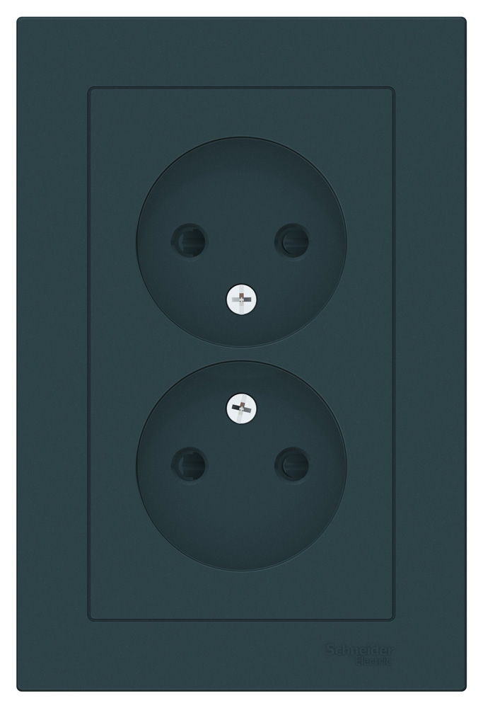• Розетка двойная без заземления со шторками 16A в сборе Schneider Electric AtlasDesign Изумруд