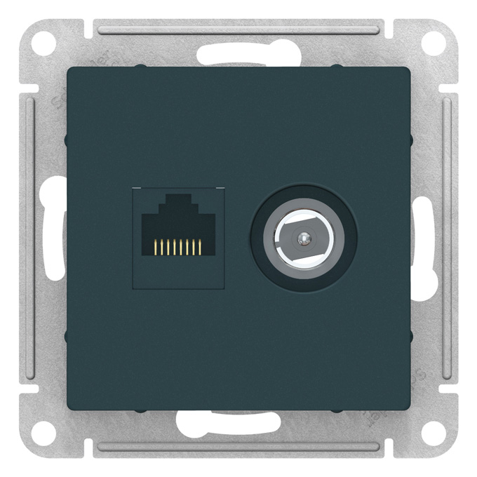 • Розетка двойная комп+TV RJ45+TV кат.5E механизм Schneider Electric AtlasDesign Изумруд
