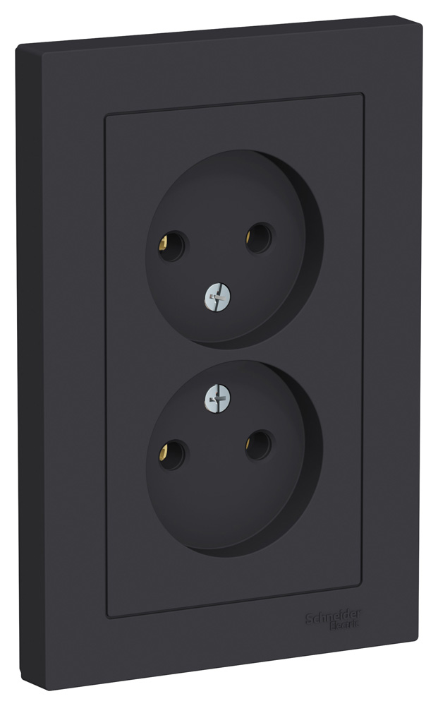 • Розетка двойная без заземления16A в сборе Schneider Electric AtlasDesign Карбон