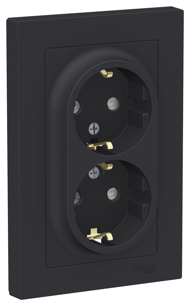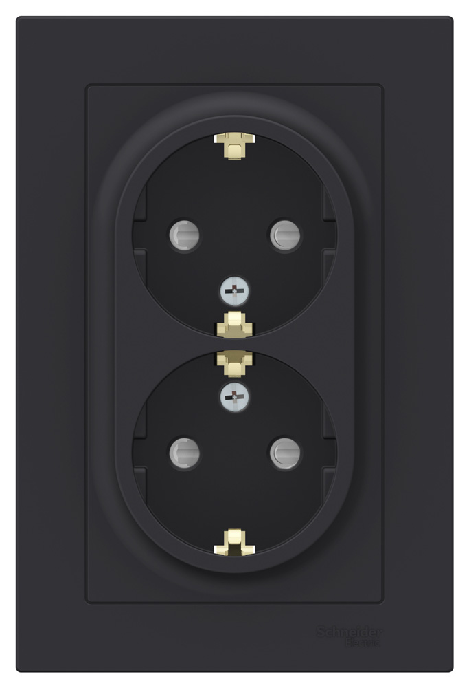 • Розетка двойная с заземлением со шторками 16A в сборе Schneider Electric AtlasDesign Карбон
