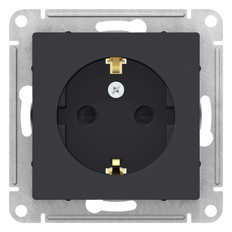• Розетка с заземлением со шторками 16A механизм Schneider Electric AtlasDesign Карбон