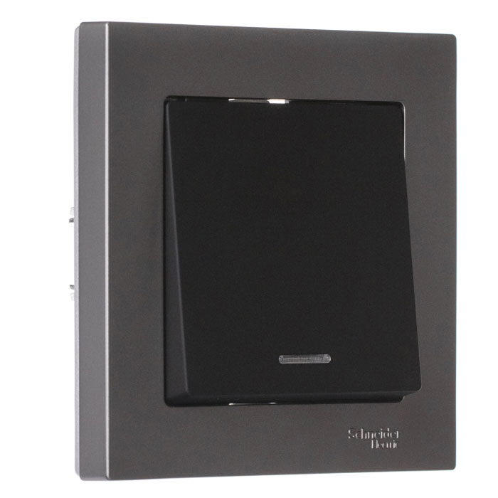 • Выключатель 1-клавишный с подсветкой сх.1A 10AX механизм Schneider Electric AtlasDesign Карбон