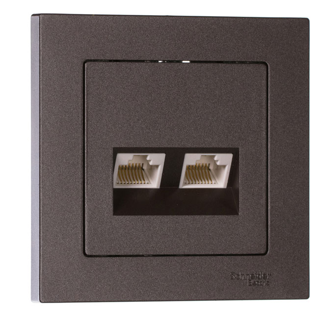• Розетка двойная компьютерная RJ45+RJ45 кат.5E механизм Schneider Electric AtlasDesign Карбон