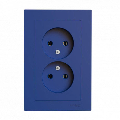 • SE AtlasDesign Розетка двойная без заземления Аквамаринин в сборе 16А