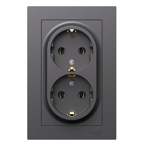• SE AtlasDesign Розетка двойная с заземлением Базальт 16А в сборе