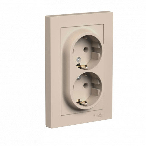 • SE AtlasDesign Розетка двойная с заземлением Песочный 16А в сборе