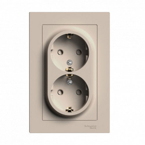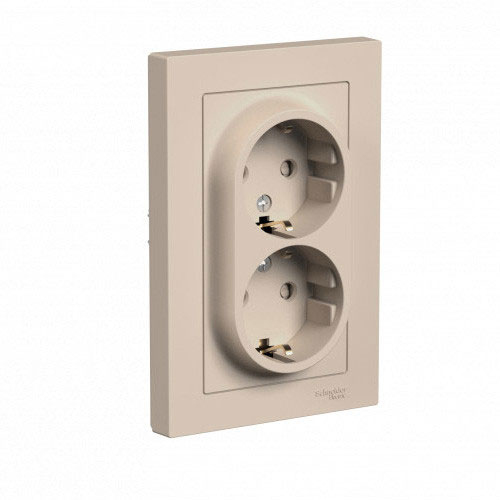 SE AtlasDesign Розетка двойная с заземлением со шторками Песочный 16А в сборе ATN001226