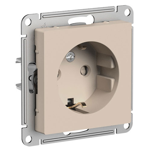 • SE AtlasDesign Розетка с заземлением со шторками Песочный 16А механизм