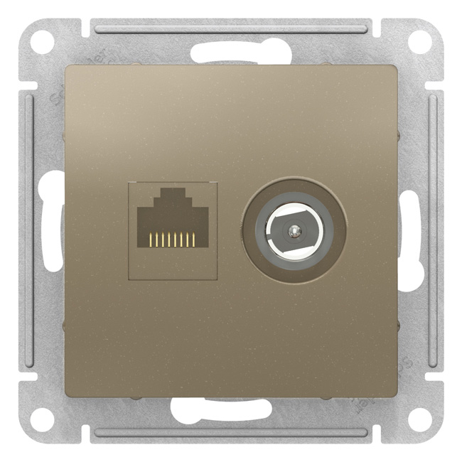 Розетка двойная комп+TV RJ45+TV кат.5E механизм Schneider Electric AtlasDesign Мокко ATN000689
