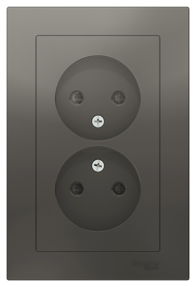 • Розетка двойная без заземления со шторками16A в сборе Schneider Electric AtlasDesign Сталь
