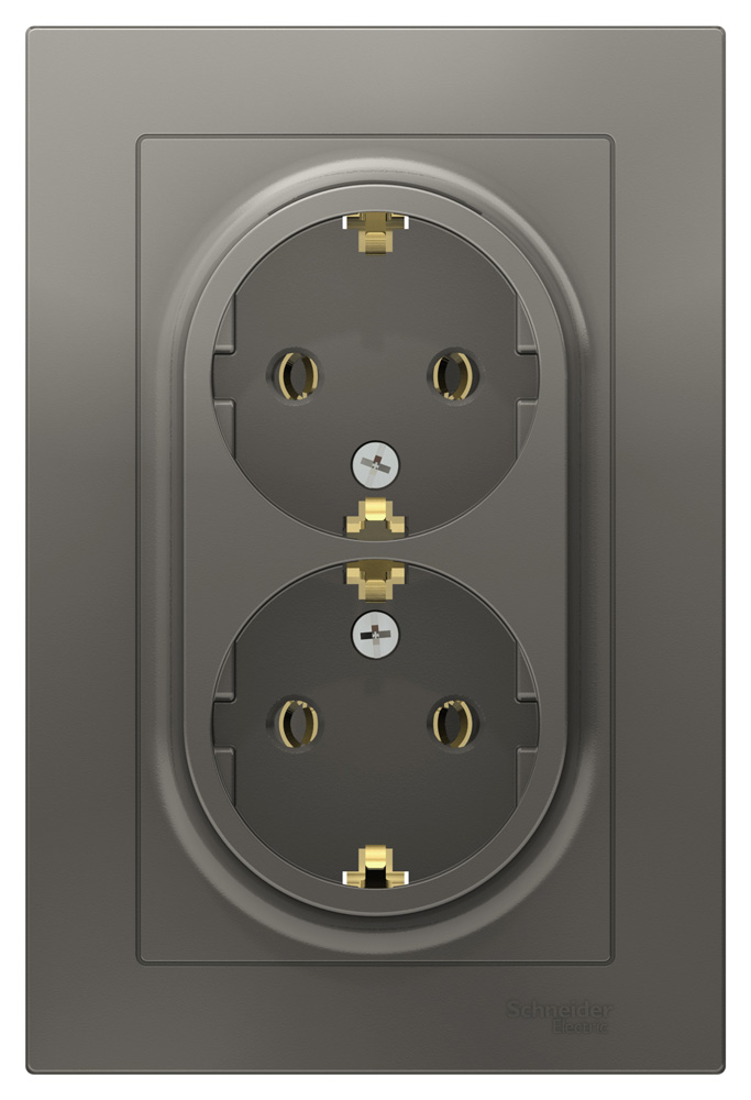 • Розетка двойная с заземлением 16A в сборе Schneider Electric AtlasDesign Сталь