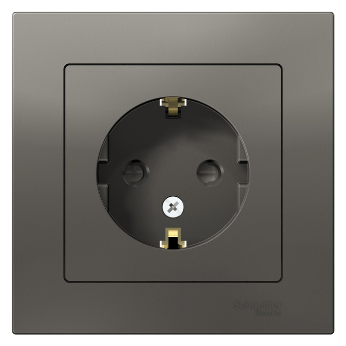 • Розетка с заземлением со шторками 16A в сборе Schneider Electric AtlasDesign Сталь