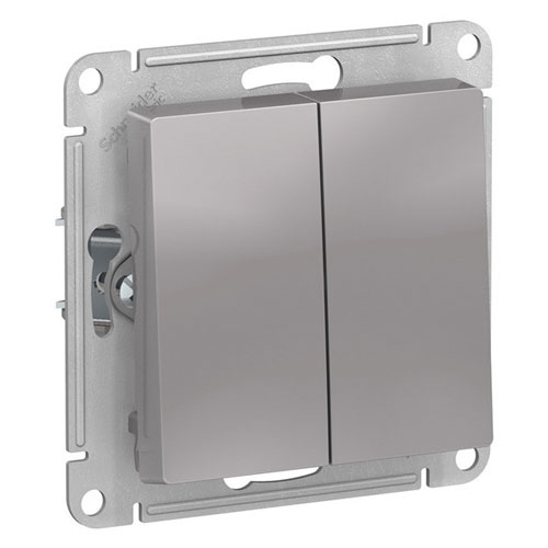 • SE AtlasDesign Выключатель Кнопочный 2-клавишный Алюминий сх.2 10А механизм