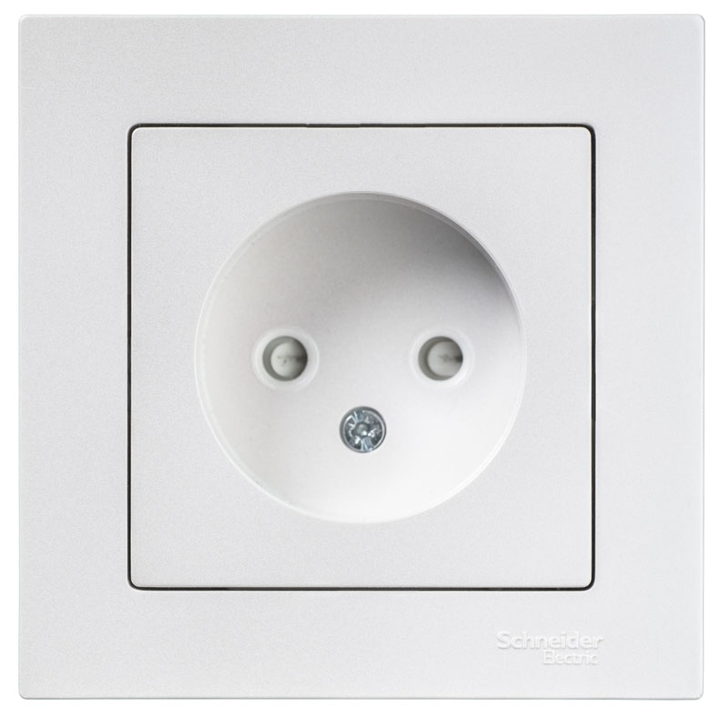 • Розетка без заземления со шторками 16A механизм Schneider Electric AtlasDesign Алюминий