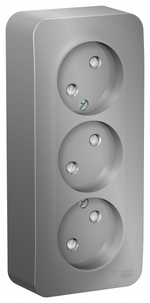 • Розетка 3-я без заземления со шторками накладного монтажа с изолирующей пластиной 16A 250В Systeme Electric Blanca Алюминий