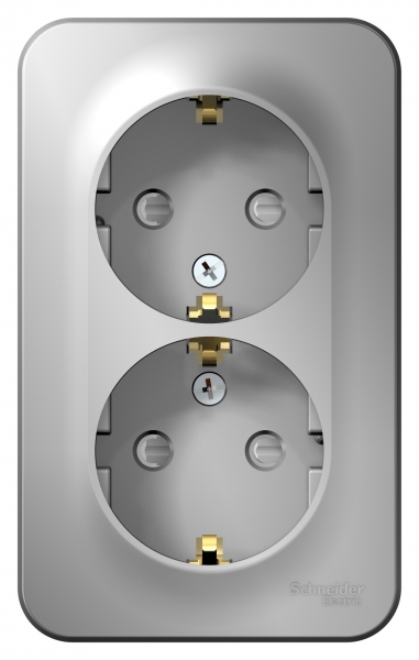 • Розетка двойная с заземлением со шторками накладного монтажа с изолирующей пластиной 16A 250В Systeme Electric Blanca Алюминий