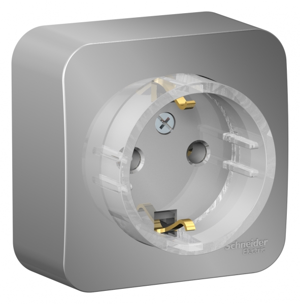 • Розетка с заземлением без шторок накладного монтажа с изолирующей пластиной 16A 250В Systeme Electric Blanca Алюминий