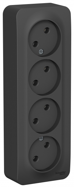 Розетка 4-ая без заземления без шторок накладного монтажа с изолирующей пластиной 16A 250В Systeme Electric Blanca Антрацит BLNRA000416