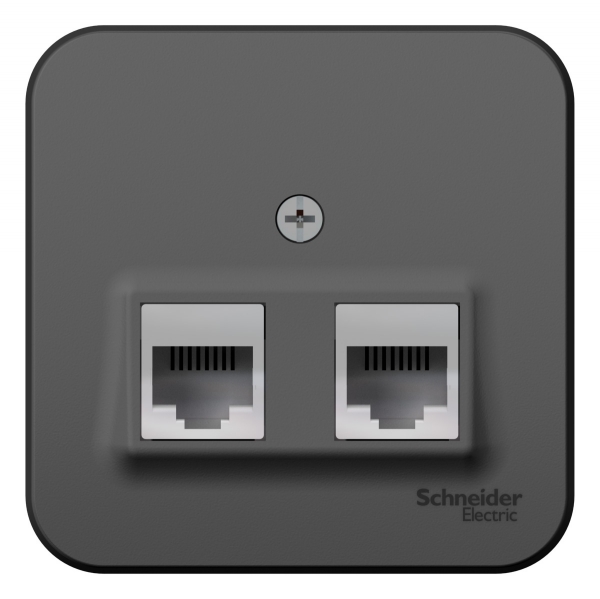 Розетка двойная компьютерная RJ45 кат.5E + телефон RJ11 накладного монтажа с изолирующей пластиной Systeme Electric Blanca Антрацит BLNIA045116