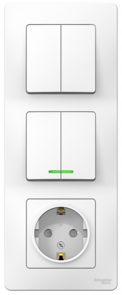 • Блок: Розетка з/к шт 16A 250В + выкл 2-кл. с подсветкой + выкл 2-кл. скрытой установки Systeme Electric Blanca Белый