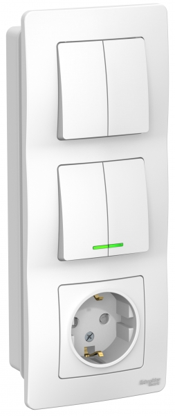 • Блок: Розетка з/к шт 16A 250В + выкл 1-кл. с подсветкой + выкл 2-кл. скрытой установки Systeme Electric Blanca Белый