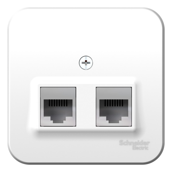• Розетка двойная компьютерная RJ45 кат.5E + телефон RJ11 накладного монтажа с изолирующей пластиной Systeme Electric Blanca Белый
