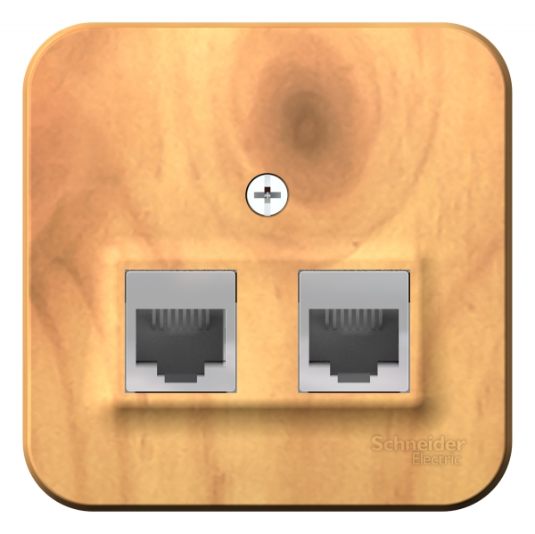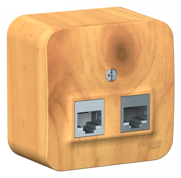 • Розетка двойная компьютерная RJ45 кат.5E + телефон RJ11 накладного монтажа с изолирующей пластиной Systeme Electric Blanca Ясень