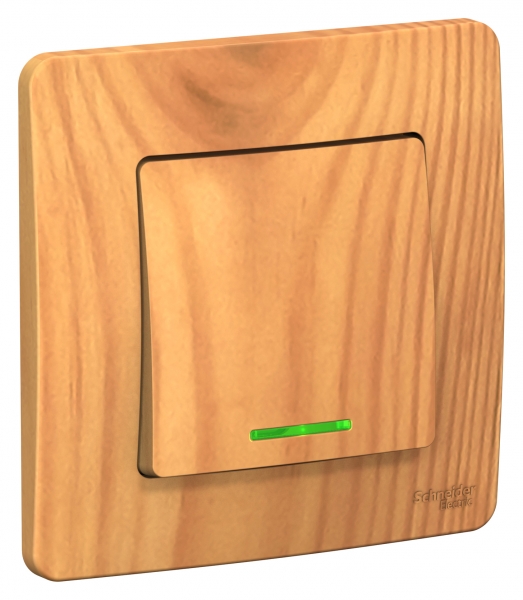 • Выключатель 1-клавишный скрытой установки (cхема 1) с подсветкой 10A 250B Systeme Electric Blanca Ясень