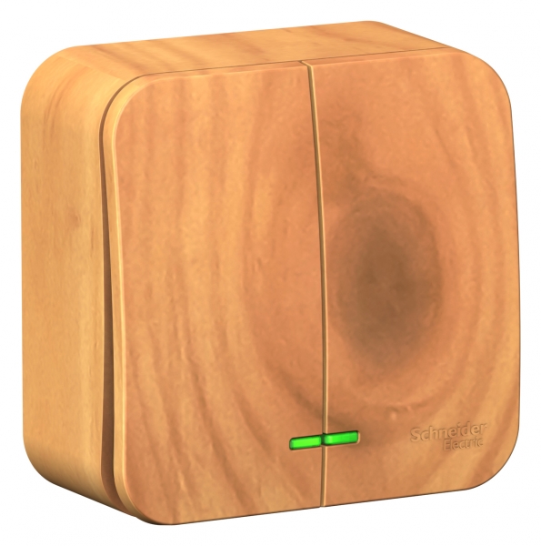 • Переключатель 1-клавишный накладного монтажа с подсветкой с изолирующей пластиной 10A 250B Systeme Electric Blanca Ясень