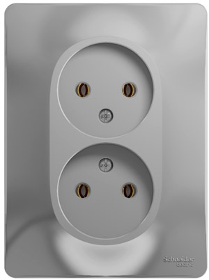 • Розетка 2-я без заземления в сборе с рамкой Systeme Electric Glossa Алюминий