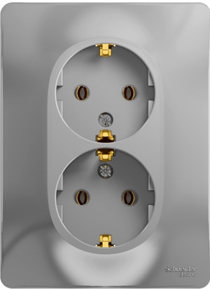 • Розетка 2-я с заземлением в сборе с рамкой Systeme Electric Glossa Алюминий