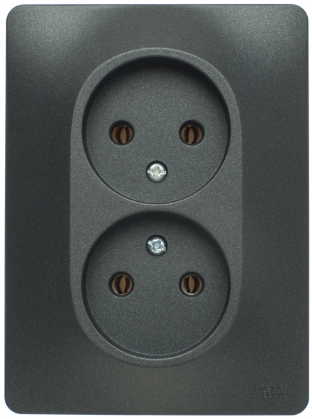 • Розетка двойная без заземления 16A в сборе Systeme Electric Glossa Антрацит