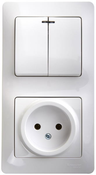 • Блок: Розетка + 2-клавишный выключатель с подсветкой Systeme Electric Glossa Белый