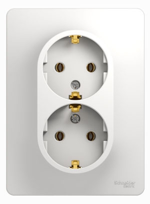 • Розетка 2-я с заземлением в сборе с рамкой Systeme Electric Glossa Белый