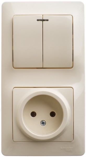 • Блок: Розетка + 2-клавишный выключатель с подсветкой Systeme Electric Glossa Бежевый