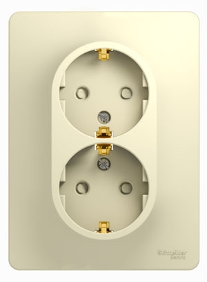 • Розетка двойная с заземлением со шторками 16A 250В в сборе Systeme Electric Glossa Молочный