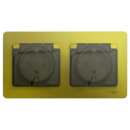 • Розетка двойная с заземлением со шторками в сборе IP44 Systeme Electric Glossa Фисташковый