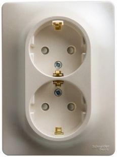 • Розетка двойная с заземлением 16A 250В в сборе Systeme Electric Glossa Молочный