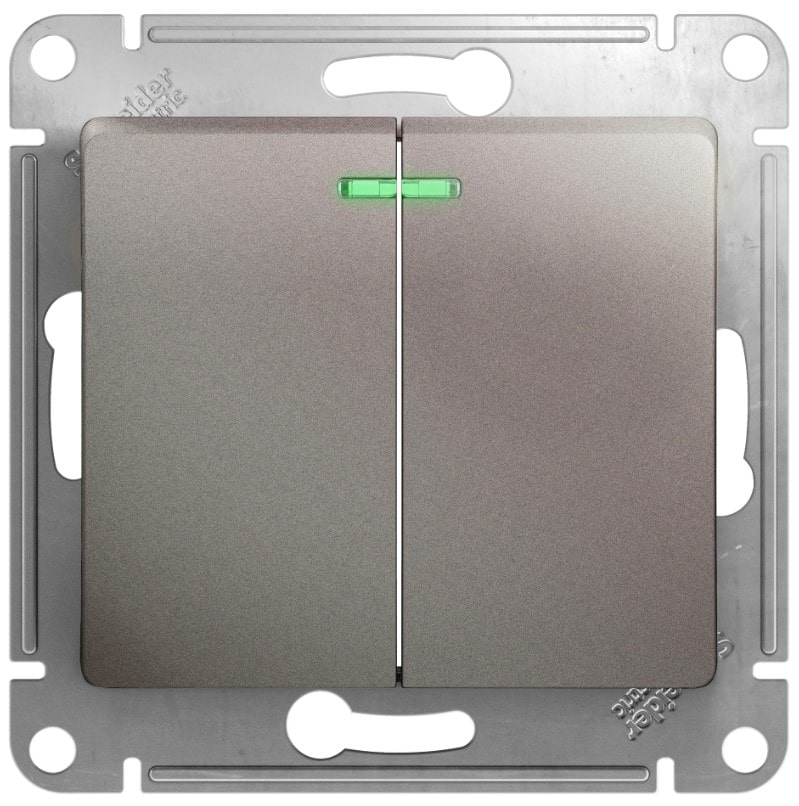 • Выключатель 2-клавишный с подсветкой 10A (схема 5A) Systeme Electric Glossa Титан
