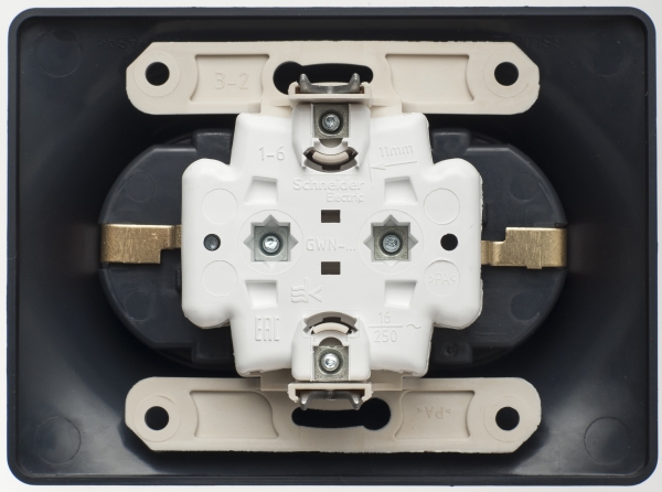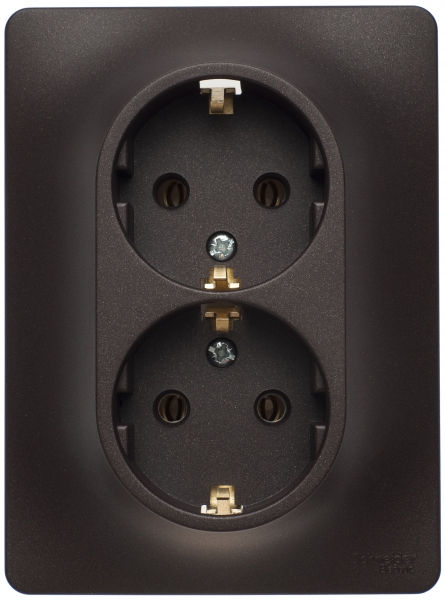 • Розетка двойная с заземлением 16A в сборе Systeme Electric Glossa Шоколад