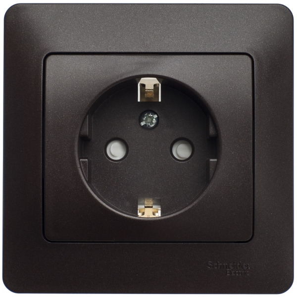 • Розетка с заземлением со шторками в сборе Systeme Electric Glossa Шоколад