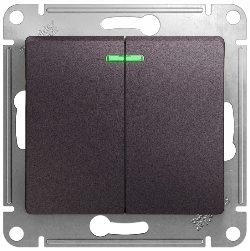 • Выключатель 2-клавишный с подсветкой (схема 5A) 10AX механизм Systeme Electric Glossa Сиреневый туман