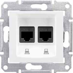 • Розетка компьютерная 2-ая RJ45 кат.5e UTP неэкранированная Schneider Electric Sedna Белый